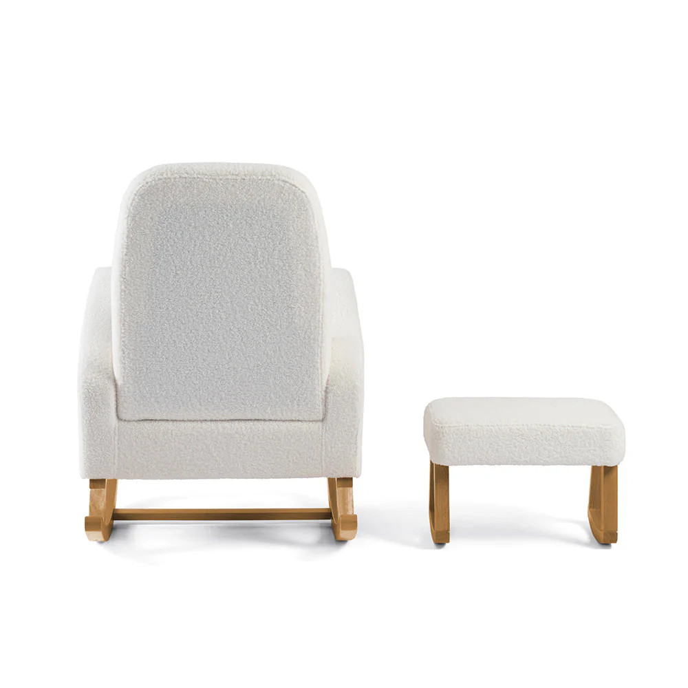 Designed to bring comfort and ease to your everyday moments, the Amana Aura pairs gentle support with a timeless, understated look. Upholstered in soft boucle fabric, it offers a smooth, soothing rock — perfect for night feeds, cuddles, or simply taking a quiet pause.